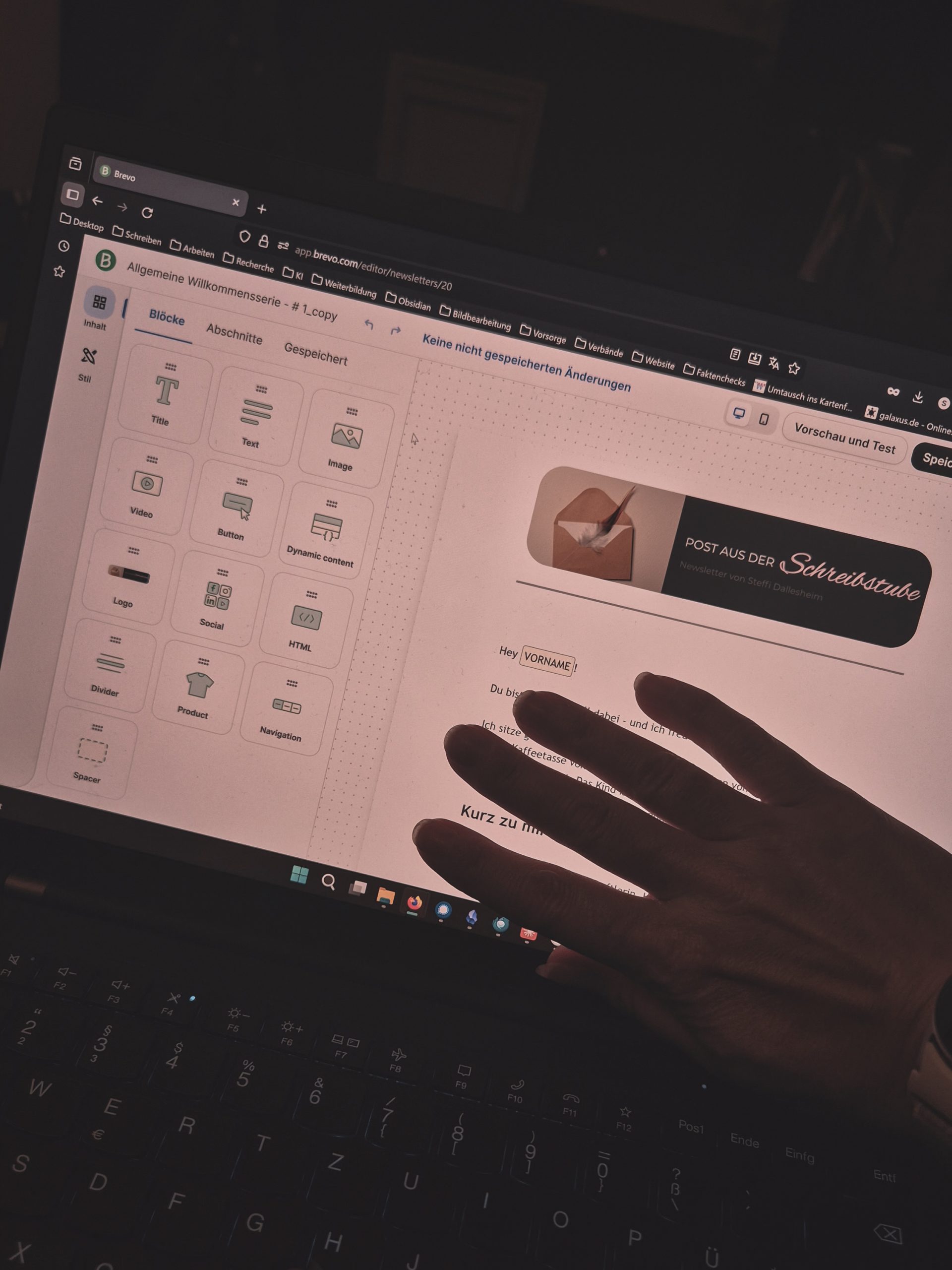 Als die Kinder endlich im Bett waren, habe ich mit der Vorbereitung meines Newsletters begonnen. Die Willkommensserie steht inzwischen!